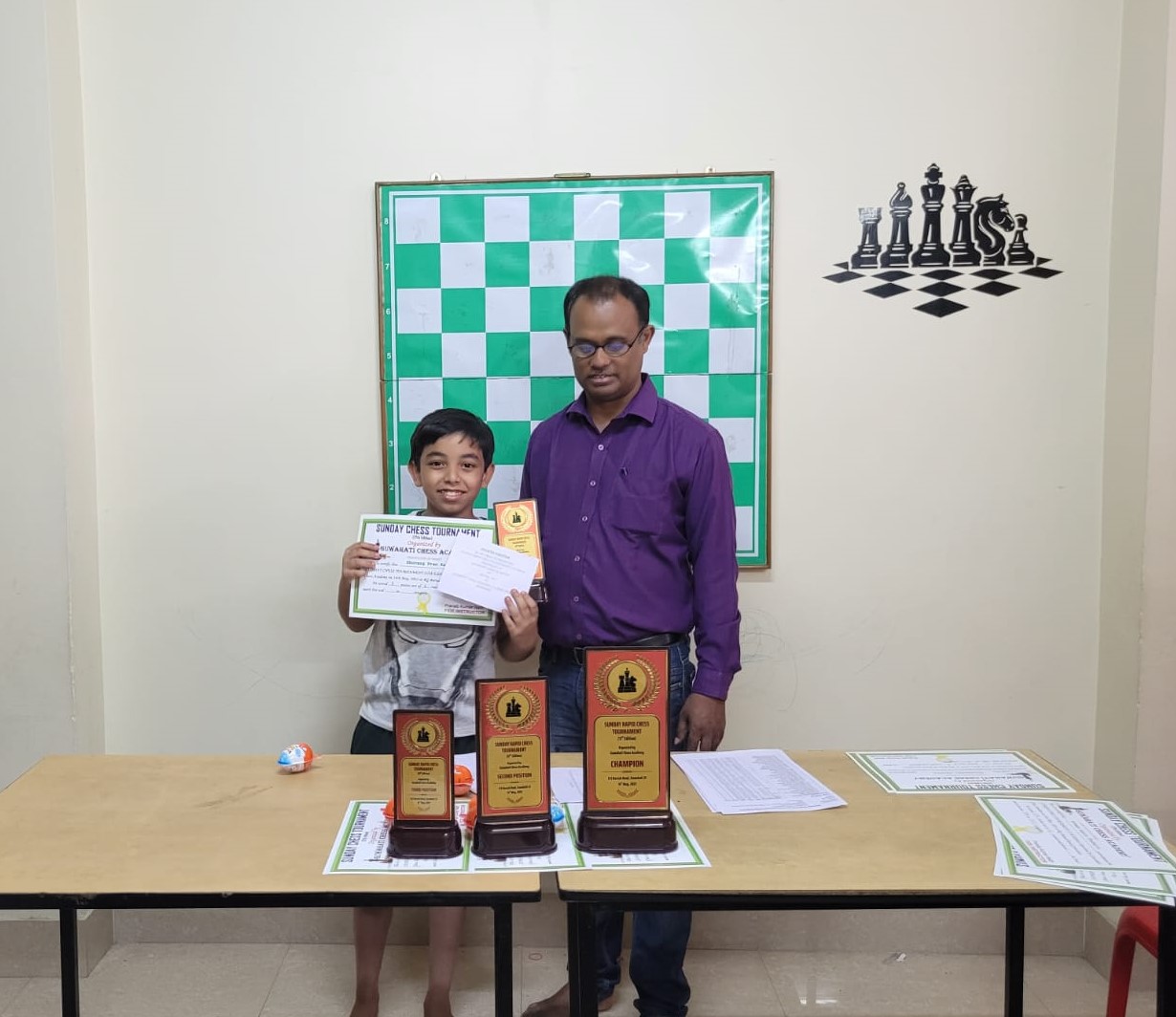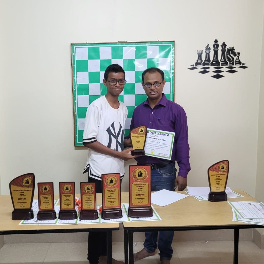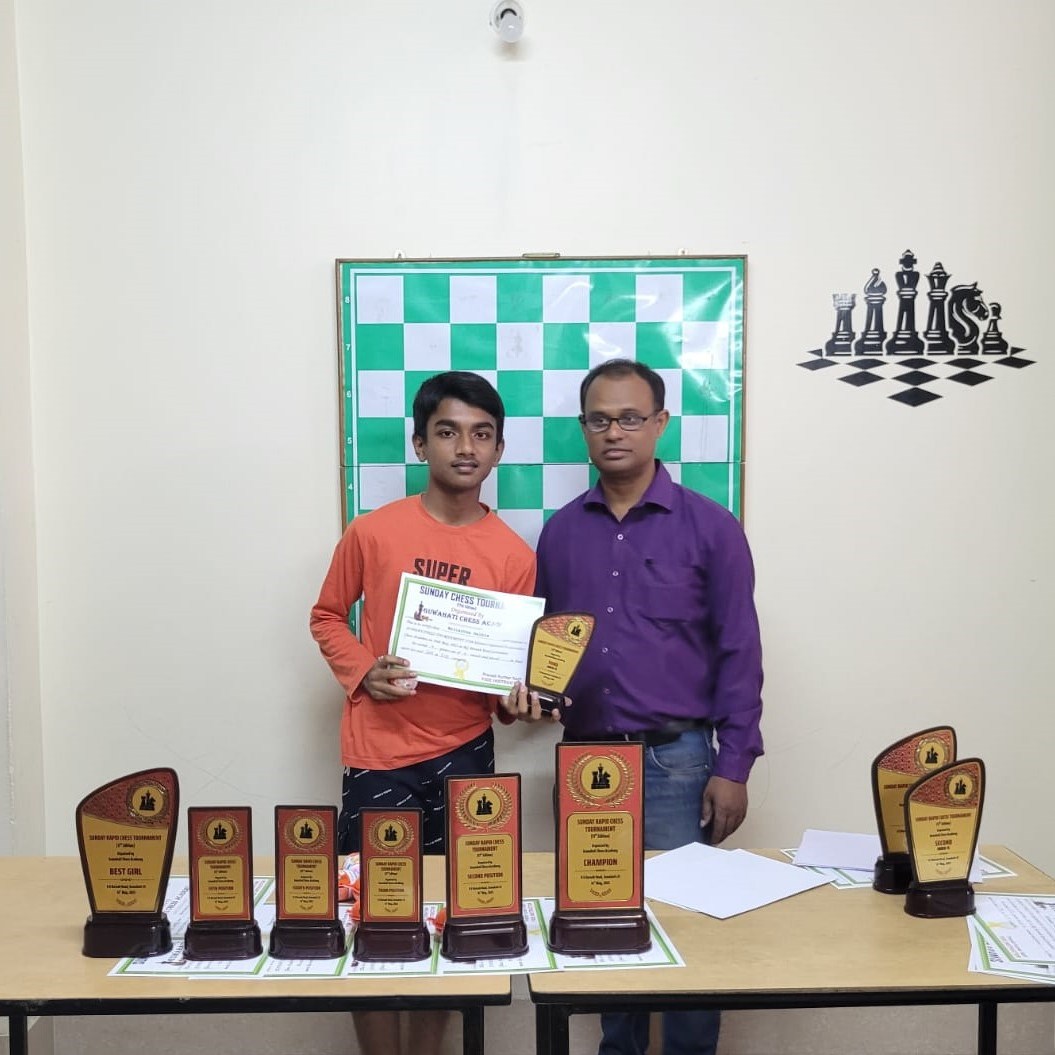 Guwahati Chess Academy hosted the 17th Edition of the Sunday Rapid Chess Tournament on May 14, 2023, at Academy premises on R G Baruah Road in Guwahati. In an impressive display of skill and determination, Nalinakhya Kashyap emerged as the deserving champion. With an exceptional performance, Kashyap scored an impressive 5.5 points out of 6 rounds, remaining undefeated throughout the entire tournament.