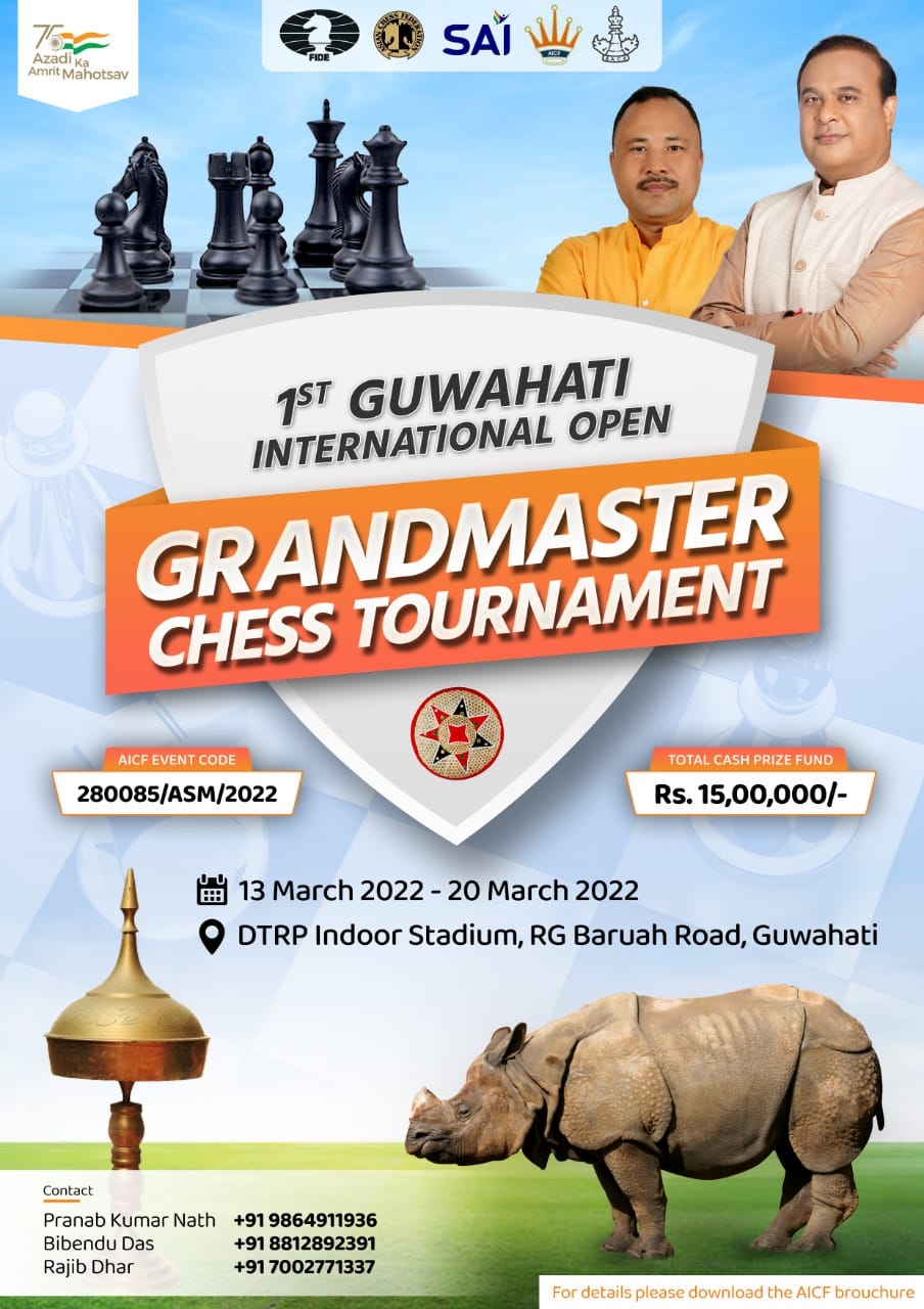 From 13th to 20th March, 2022 Great Opportunity for Assam and Guwahati Players All Assam Chess Association in support of Government of Assam and All India Chess Federation is going to organize 1st Guwahati International Grandmaster Tournament from 13th to 20th March, 2022 at Desh Bhakt Tarun Ram Phookan Indoor Stadium at R G BaruahContinue reading “Grandmaster Tournament in Guwahati“